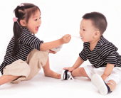 他们不再像婴儿一样用哭泣来表达自己的不安了,他们开始学习用各种手段安慰受伤的人。他们会对跌倒的小朋友说:“不要哭”;会邀请闷闷不乐的小朋友加入游戏;会把苹果分给哭泣的小伙伴。他们在学会同情他人的同时,也在学习如何安慰别人,当然,他们经常用错方法,比如用自己的奶瓶去安慰因切洋葱而流泪的妈妈。