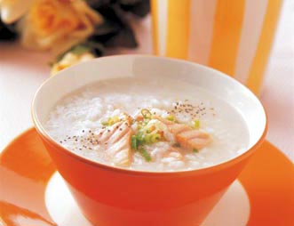 3. 把鸡肉剥下,撕成细条,放入粥内,加入调料即可。