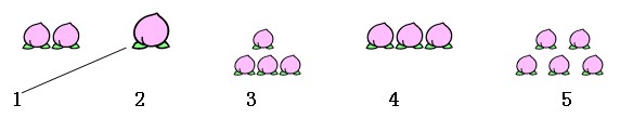 ⑴、幼儿讨论:这5盘桃是按什么顺序排列的?