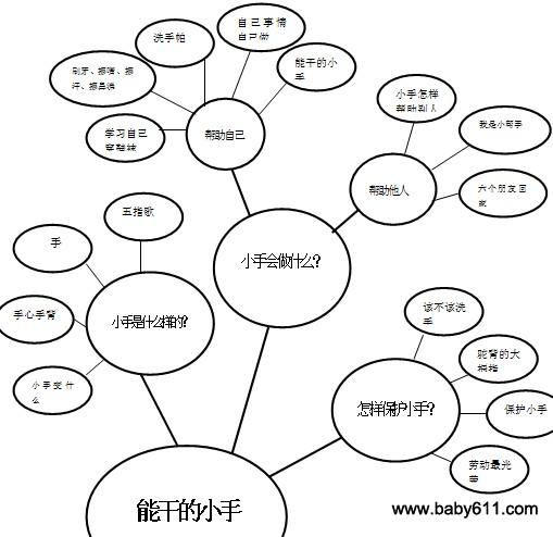 因此,我们设计了 "能干的小手" 主题活动。为了让幼儿进一步了解自己的身体,知道小手是我们的好朋友,了解小手的作用和怎样保护小手。我们将通过一系列和主题有关的活动,来锻炼幼儿的动手能力,帮助幼儿更好地了解自己的小手是很能干的,从而提高自信心和社会交往能力,并且更好地激发了想象力和初步的创新意识。