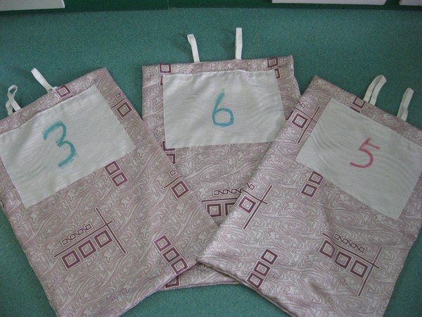 玩法及目的:幼儿站在袋口齐胸的布袋里,背上背带(有松紧),练习幼儿的跳跃技能和协调能力。