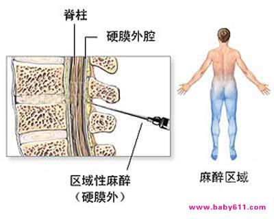 椎管内麻醉,其中又以蛛网膜下腔阻滞(又称脊麻)和硬脊膜外阻滞(又称硬膜外麻醉)应用得最多,一般统称为半身麻醉。在麻醉前,产妇需取左侧卧位,屈腿弯腰。
