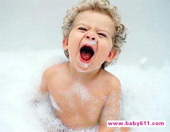 给小儿洗澡,动作要轻柔敏捷。以脐部为界,分两部分洗。先使小儿仰卧,妈妈用左手托住小儿枕部,拇指及中指将小儿双耳向前按,贴于耳前脸上,以防洗脸水灌入耳内。小儿臀腰部夹在成人腋下,背部躺在成人左前臀上,固定后,右手用小毛巾浸温开水,先洗双眼分泌物(自内眼角向外眼角擦洗)、耳后、颈、胸、背、双腋窝、双上肢及双手。新生儿的手掌抓得很紧,应掰开洗净。擦洗腹部时,不要弄湿脐带。此后,将小儿倒过来,使小儿的头顶贴在妈妈的左胸前,用左手抓住小儿的左大腿,右手用浸水的小毛巾先洗会阴腹股沟及臀部(女婴一定要从前向后洗),最后洗下肢及双脚。一般不需用肥皂。
