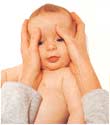 1.帮宝宝翻个身,让他的小脸对着你,用拇指肚轻柔地抚摩他的前额。按摩时要避开眼部,不要让按摩油进入宝宝的眼睛。
