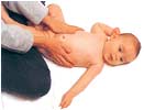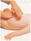 轻轻沿每根肋骨滑动,然后沿两条肋骨之间的部位滑回来,轻轻伸展这个部位的肌肉。把手移到宝宝的脖颈后面,手指聚拢,胸部按摩就结束了。