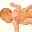1.双手捧住宝宝的头,向肩膀和背部抚摩。两只手在宝宝的背部来回按摩。按摩时,要五指并拢,使掌根到手指成为一个整体,把注意力集中在手上,保持力度的均匀。