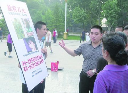 16日一大早,邢台市达活泉公园来了一位特殊的游客,他拿着一块写着“悬赏万元寻找郑州‘犀利妹’”的展板,边走边向晨练的人们打听是否见过展板上的女孩。