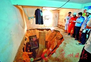 钟振光告诉记者,前天晚上他回老屋了,昨日早上8时15分左右回来打开屋门时发现房间内的衣柜等物品不见了,开始还以为是遭了贼,后来才发现房间靠近叔叔房屋一侧出现了塌陷,衣柜等滑入地下了。随后他赶紧跑出来敲叔叔的屋门,但一直无人回应。于是他找来工具砸开屋门,这时发现叔叔房间内的塌陷口更大,叔叔两夫妇都不见了,一张床已经不见了踪影,另一张床还在房间内。而据附近群众介绍,前天晚上9时许还看到钟荣发、巫凤招夫妇出来走动,后来就回家睡觉了。
