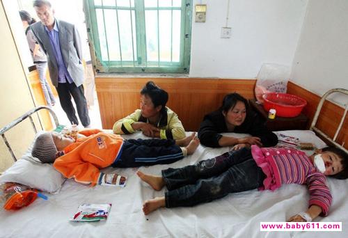 记者在马庄镇中心卫生院看到,13名孩子都已经入住病房挂上了吊瓶,大多数孩子头部包裹着纱布,面部不同程度带有擦裂伤。