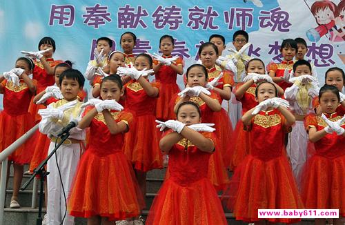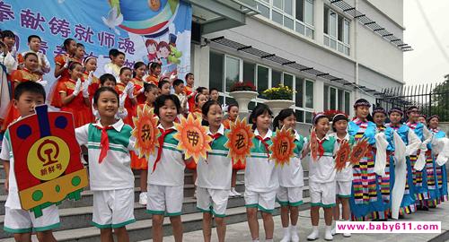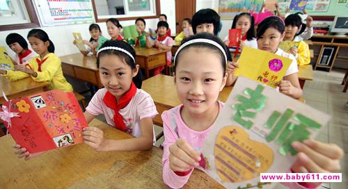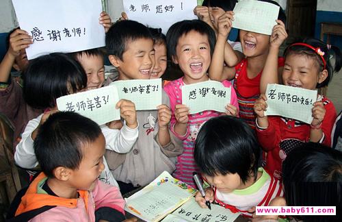 辽宁省凌海市余积镇希望小学“留守儿童之家”的500名山村留守儿童,9月9日为“代理家长”也就是代课老师举办了一场教师节感恩队会,表达对老师的感恩之情。