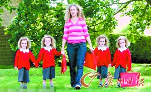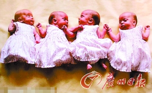 世界上只有27例同卵四胞胎,他们的出生率是6400万分之一。尽管刚出生时小霍莉和杰西卡因为营养不良体重较轻,四年后的今天,她们四人的身高和体重已经完全一样了。