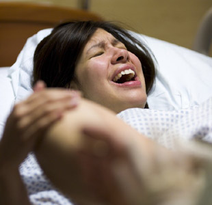 3.紧握产台把手,可将头部略抬起看向肚脐方向,以解大便的方式,向下用力。