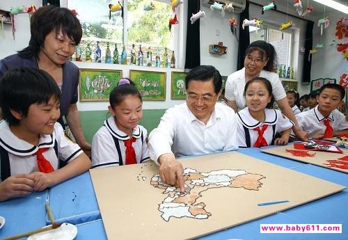 资料图片:2009年5月31日,中共中央总书记、国家主席、中央军委主席胡锦涛来到北京市海淀区巨山小学,亲切看望小朋友们。这是胡锦涛同正在上手工课的小学生一起用蛋壳粘贴中国地图。新华社记者 兰红光 摄2009年:胡锦涛总书记“六一”前夕在北京看望中外小朋友2009年5月31日上午,中共中央总书记、国家主席、中央军委主席胡锦涛前往北京市海淀区巨山小学和朝阳区芳草地国际学校,亲切看望中外小朋友,代表党中央,向全国各族少年儿童表示节日的祝贺,向全国广大少年儿童工作者表示崇高的敬意。