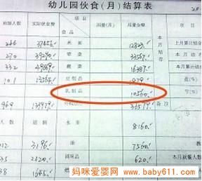 幼儿每天只喝豆浆,从没有喝过牛奶、奶粉等。幼儿园公示的食谱是豆浆,账务中却是牛奶等乳制品费。从2008年9月至2011年6月,幼儿园伙食结算表中出现乳制品费用计198653元。比如:2008年9月至2009年6月,乳制品费用23295元;2009年9月至2011年1月,乳制品费用132696元;2011年2月至2011年6月,乳制品费用42662元。
