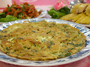 制作:将鸡肉取2/3稍蒸,放入黄酒搅拌并蒸干水分,取出切成丝,剩余的鸡肉切成肉末待用;取大虾四只煎炸成红色,另取两只去皮,沾上面粉煎炸;鸡肉丝与胡萝卜丝、沙拉油搅拌做鸡身,鸡肉末炒熟做鸡脖、鸡头,四只红色大虾做鸡尾,另两只大虾做鸡腿,用鸡蛋一只煎制成“太阳”;油菜叶切丝,加油炸成深绿色,制成草地。 说明:其特点是中西结合,造型美观。孕前食之,能温补肾气,有利于胎儿的孕育。原因是鸡肉补血,而精血同源,故能益精,大虾则温补肾气。